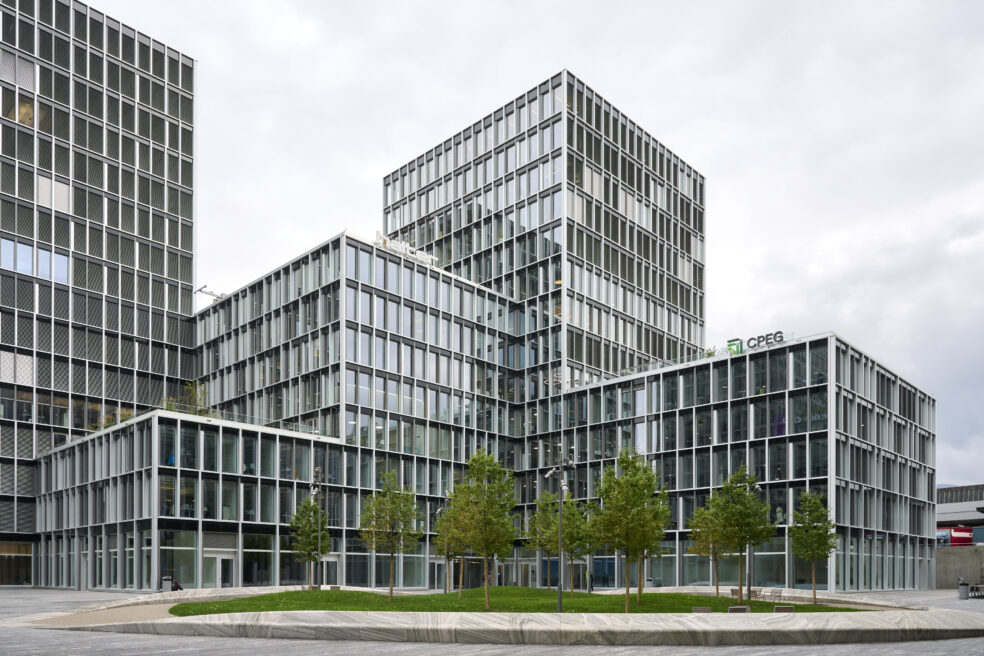 La CPEG s’est implantée dans le quartier d’affaires de Genève. D’une part, en tant que propriétaire de l’Esplanade 3 comprenant deux immeubles, soit 30’000 m2 de surfaces commerciales louées à des tiers ; d’autre part, en occupant trois étages dans l’un des bâtiments qui accueille son siège.